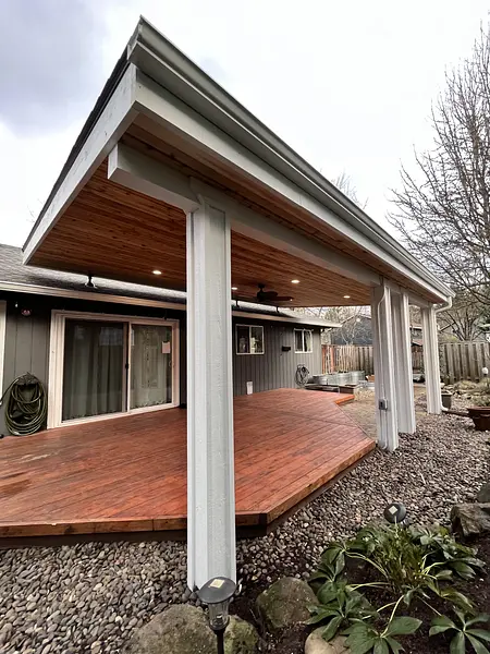 We contracted with Mike Rainey to tear out our old patio/cover and to build a new modern patio/cover for our home. Mike hit it out of the ballpark with our new patio: it is modern bright and airy including lighting with a fan, cedar tongue and groove that really gives it a polished finish, and a glu...